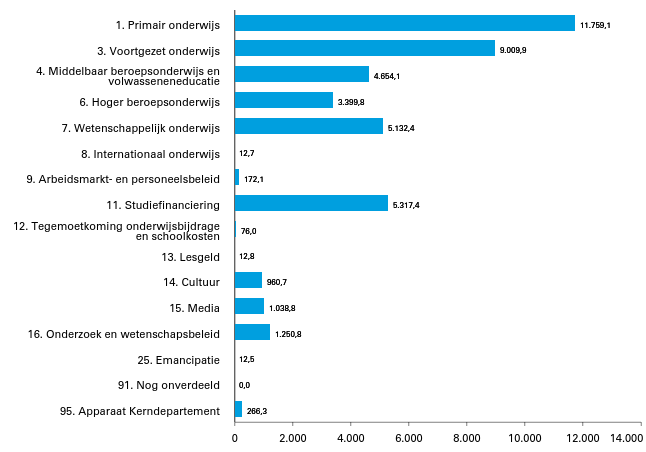 Figuur 1 Gerealiseerde uitgaven verdeeld over beleidsartikelen en niet-beleidsartikelen (x €1 miljoen). Totaal € 43.075,4Figuur 2 Gerealiseerde ontvangsten verdeeld over beleidsartikelen en niet-beleidsartikelen (x €1 miljoen). Totaal € 1.397,6