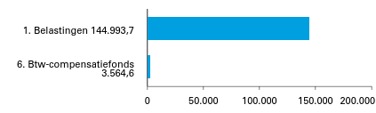 Figuur 2 Gerealiseerde ontvangsten IX Financiën (x € 1 mln.). Totaal € 151.367,5 mln.
